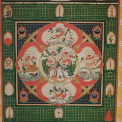 厨子の扉の内側には、左右に四天王を二尊ずつ描いている。いずれも火焔を伴った円相の光背を伴い、岩座上の邪鬼を踏みつけて立つ像容である。